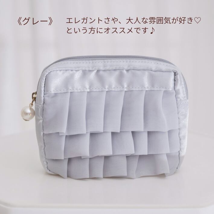 ファスナー部分がパールとなっている、サテン生地のラグジュアリーなポーチ♡